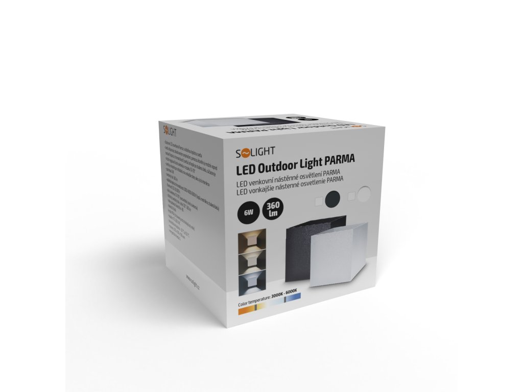Solight LED vonkajšie nástenné osvetlenie Parma, 6W, 360lm, 10-110°, biela