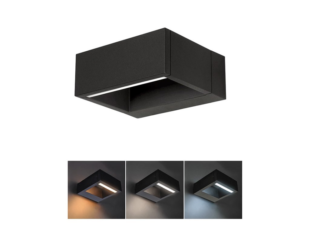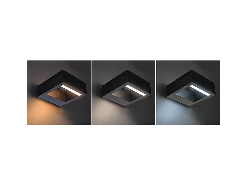 Stenové svietidlo Ragusa LED zaujme svojím moderným vzhľadom a možnosťou výberu teploty svetla - medzi teplou (3000 K), neutrálnou (4000 K) a studenou bielou (6000 K). Vďaka integrovanému prepínaču môžete ľahko nastaviť preferovanú chromatickosť. Svetelný tok 450 lm a uhol svietenia 120° zaručujú príjemné a rovnomerné osvetlenie fasád, terás a interiérov.