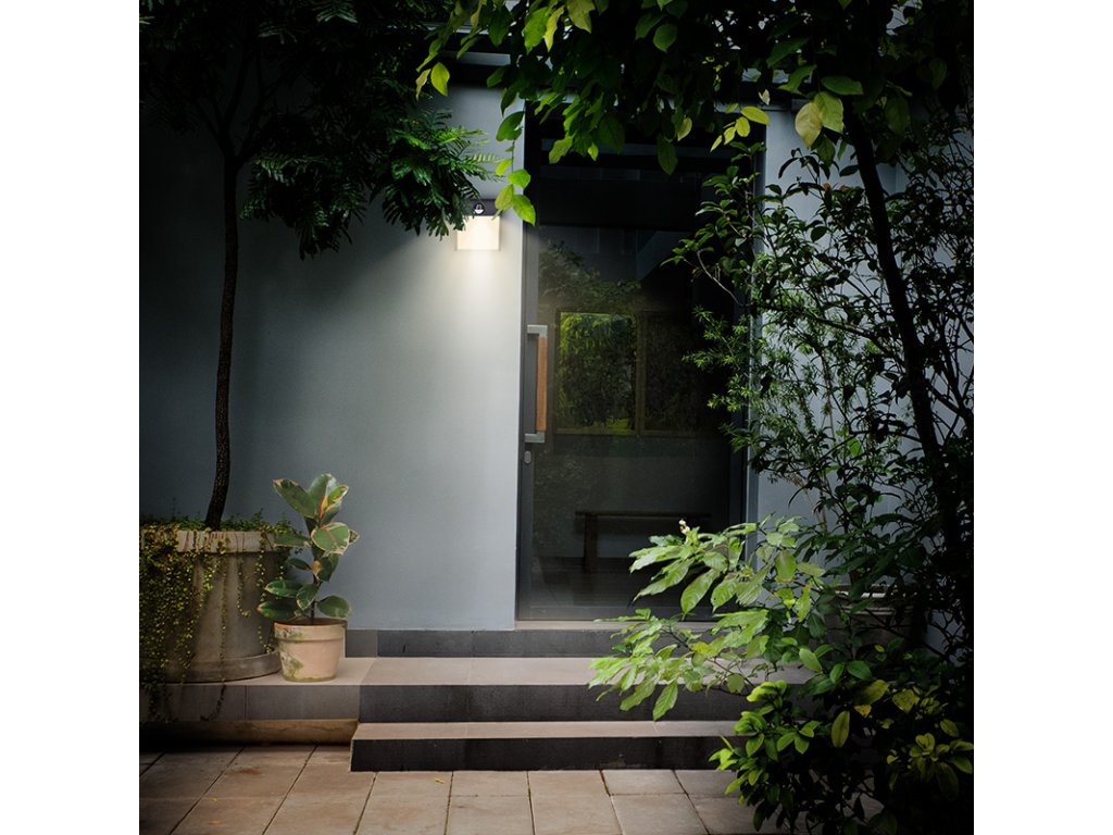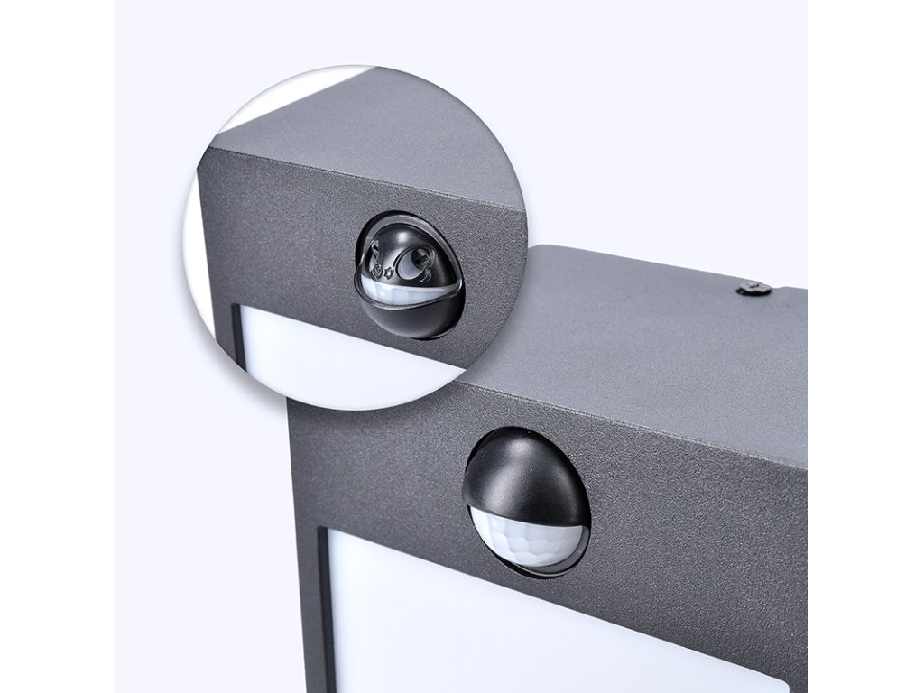 Nastaviteľný snímač PIR umožňuje nastaviť dosah až na 7 metrov, uhol detekcie na 120° a trvanie svetla od 5 sekúnd do 5 minút. Svietidlo má kompaktné rozmery 125 × 85 × 135 mm, čierne hliníkové telo a krytie IP44 proti striekajúcej vode. Životnosť LED je až 30 000 hodín a uhol svietenia 120° zaručuje rovnomerný rozptyl svetla.