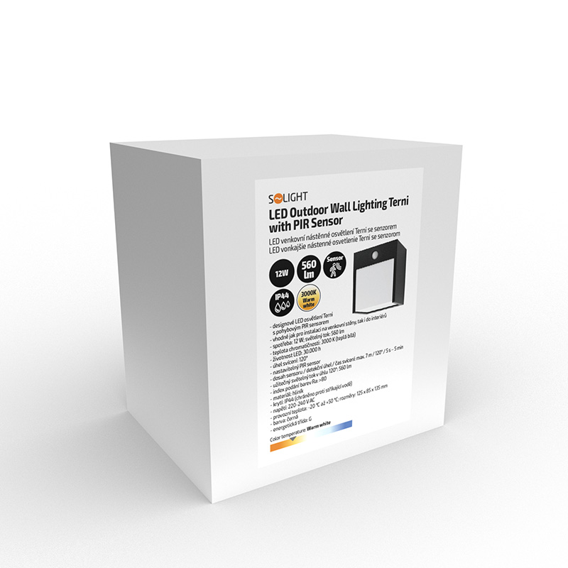 Solight LED vonkajšie nástenné osvetlenie Terni, 12W, 560lm, 3000K, PIR sensor