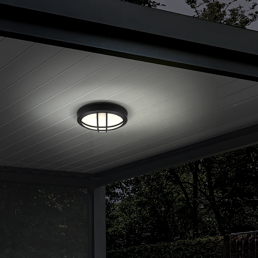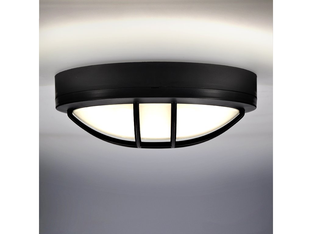 Robustné svietidlo LED okrúhleho tvaru s čiernou mriežkou je ideálne na miesta, kde sa vyžaduje vyššia mechanická odolnosť a ochrana svetelného zdroja. S príkonom 13 W a svetelným tokom 910 lm poskytuje dostatočné osvetlenie s neutrálnou bielou farbou (4000 K). Vďaka krytiu IP65 je plne chránené proti prachu a silnému postriekaniu vodou, takže je vhodné na vonkajšie použitie a do náročných podmienok.