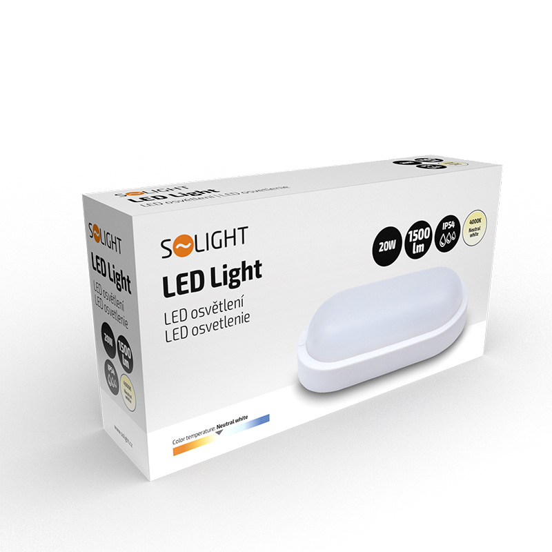Univerzálne svietidlo LED s oválnym dizajnom je ideálne na montáž na steny a stropy v interiéri aj exteriéri. S výkonom 20 W a svetelným tokom 1500 lm poskytuje dostatok svetla pre chodby, vchody, pivnice a vonkajšie priestory. Neutrálna biela farba svetla (4000 K) je príjemná pre oči a vytvára prirodzenú atmosféru. Stupeň krytia IP54 poskytuje ochranu proti striekajúcej vode, vďaka čomu je svietidlo odolné voči vlhkosti.