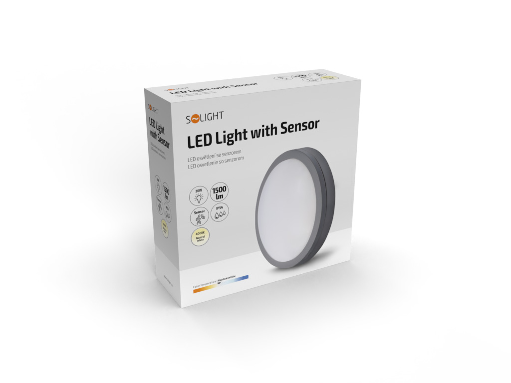 Solight LED vonkajšie osvetlenie so senzorom Siena, sivé, 20W, 1500lm, 4000K, IP54, 23cm