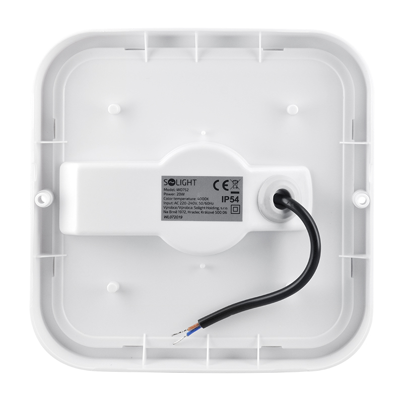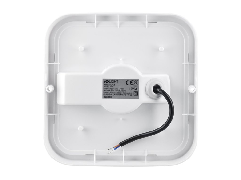 Výkonné štvorcové svietidlo LED s príkonom 20 W a svetelným tokom 1500 lm je určené na inštaláciu na steny a stropy v interiéri aj exteriéri. Neutrálne biele svetlo s teplotou 4000 K zaručuje príjemné a prirodzené osvetlenie. Svietidlo má uhol svietenia 120°, čo prispieva k rovnomernému rozloženiu svetla bez oslnenia.