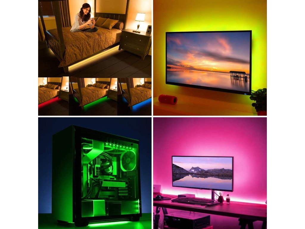Vytvorte si jedinečnú atmosféru pred televízorom pomocou pásu LED SMART RGB vhodného pre uhlopriečky 32-65" (80-165 cm). Dĺžka 4x50 cm je ideálna na rovnomerné osvetlenie zadnej strany televízora vrátane farebných efektov a režimov. Možno ho ovládať pomocou aplikácie (TuyaSmart / SmartLife), hlasových asistentov (Alexa, Google Home) alebo priloženého diaľkového ovládača.
