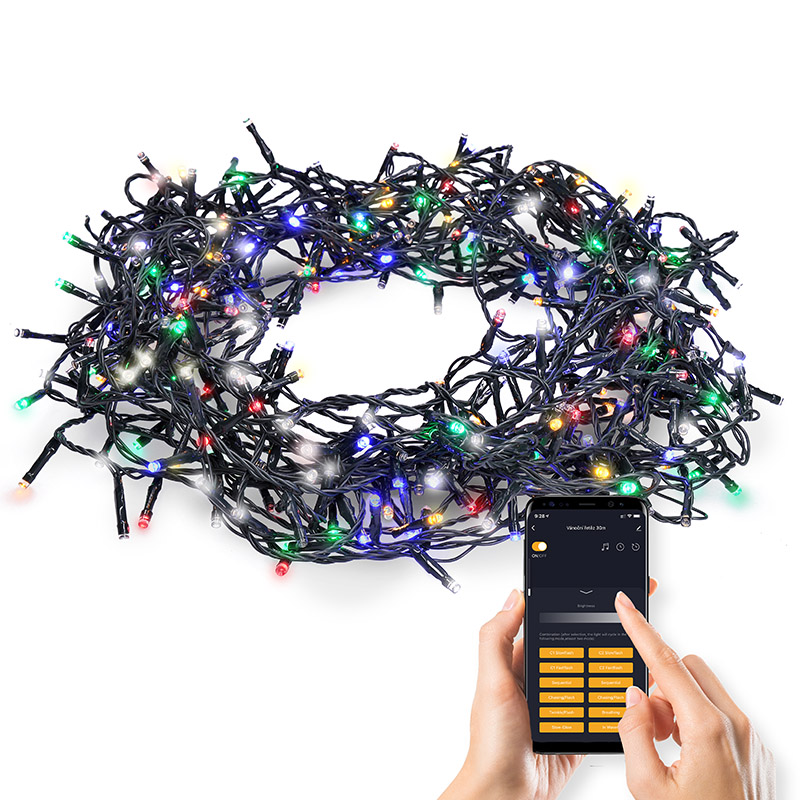 Táto inteligentná LED reťaz so 400 LED diódami ponúka to najlepšie z klasickej a modernej technológie. Vďaka integrovanému systému TUYA SMART WIFI ju možno ovládať prostredníctvom mobilnej aplikácie v češtine, angličtine a ďalších jazykoch - nastaviť farbu svetla, intenzitu, časovač a ďalšie funkcie. Na výber je 16 svetelných režimov, od tichého osvetlenia až po prelínanie, stmievanie a farebné efekty. Prípadne môžete použiť tlačidlo priamo na napájacom zdroji.