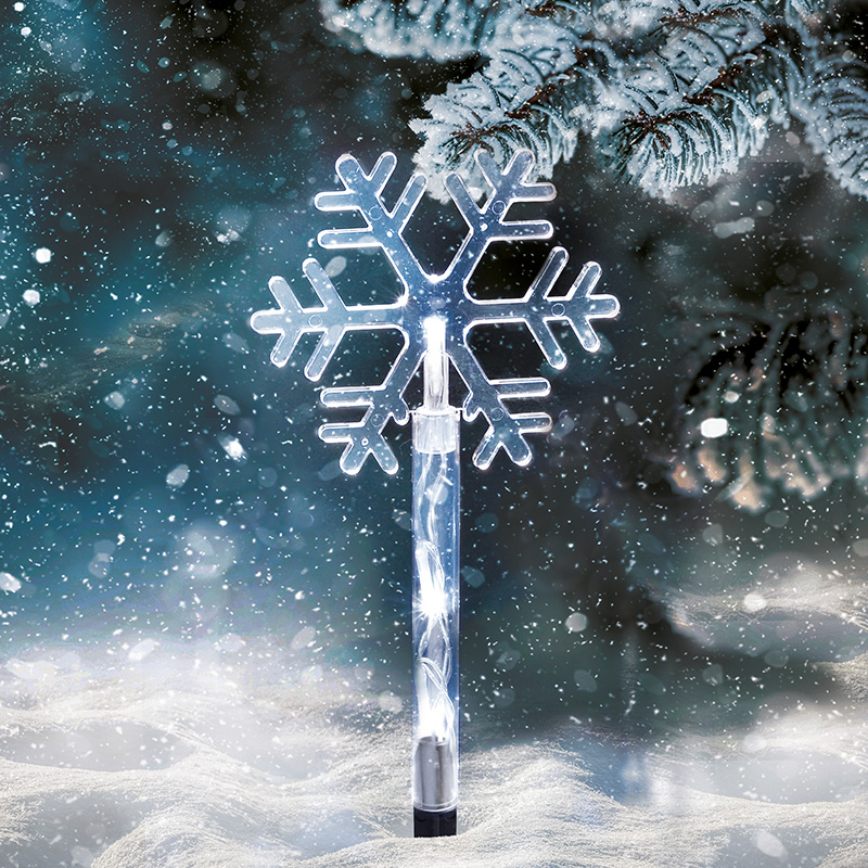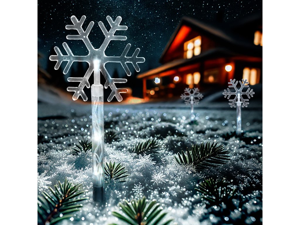 Vytvorte si vo svojej záhrade zimnú rozprávku s týmito dekoráciami LED v podobe snehových vločiek. Súprava obsahuje 5 snehových vločiek s celkovo 15 LED diódami, ktoré svietia studeným bielym svetlom a vyzerajú krásne na vašom trávniku, v kvetináčoch alebo okolo chodníka. Výška snehových vločiek je 35 cm a celková dĺžka svetiel je 140 cm, spolu s 50 cm napájacím káblom.