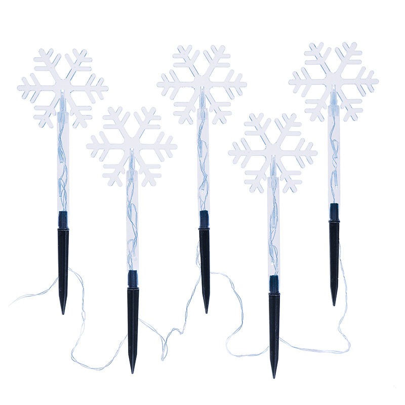 Solight LED záhradné osvetlenie, snehové vločky, 5ks, 15x LED, zapichovacie, 3xAA
