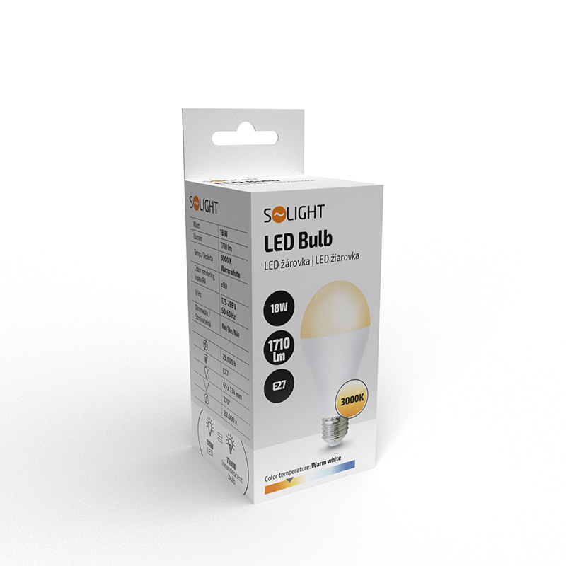 Solight LED žiarovka, klasický tvar, 18W, E27, 3000K, 270°, 1710lm