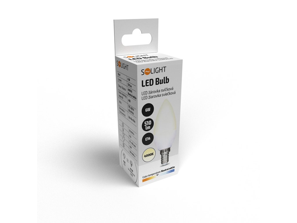 Solight LED žiarovka, sviečka, 6W, E14, 4000K, 510lm