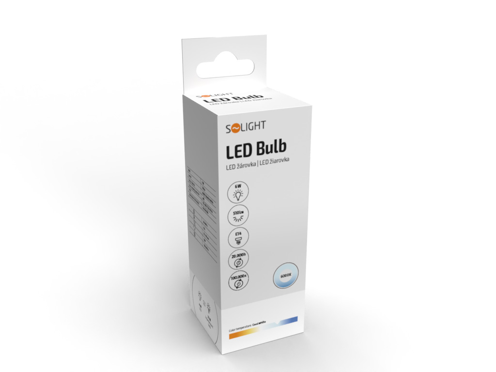 Solight LED žiarovka, sviečka, 6W, E14, 6000K, 510lm