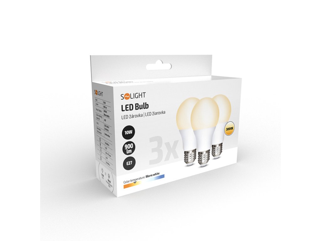 Solight LED žiarovka 3-pack, klasický tvar, 10W, E27, 3000K, 270°, 900lm, 3ks v baleniu