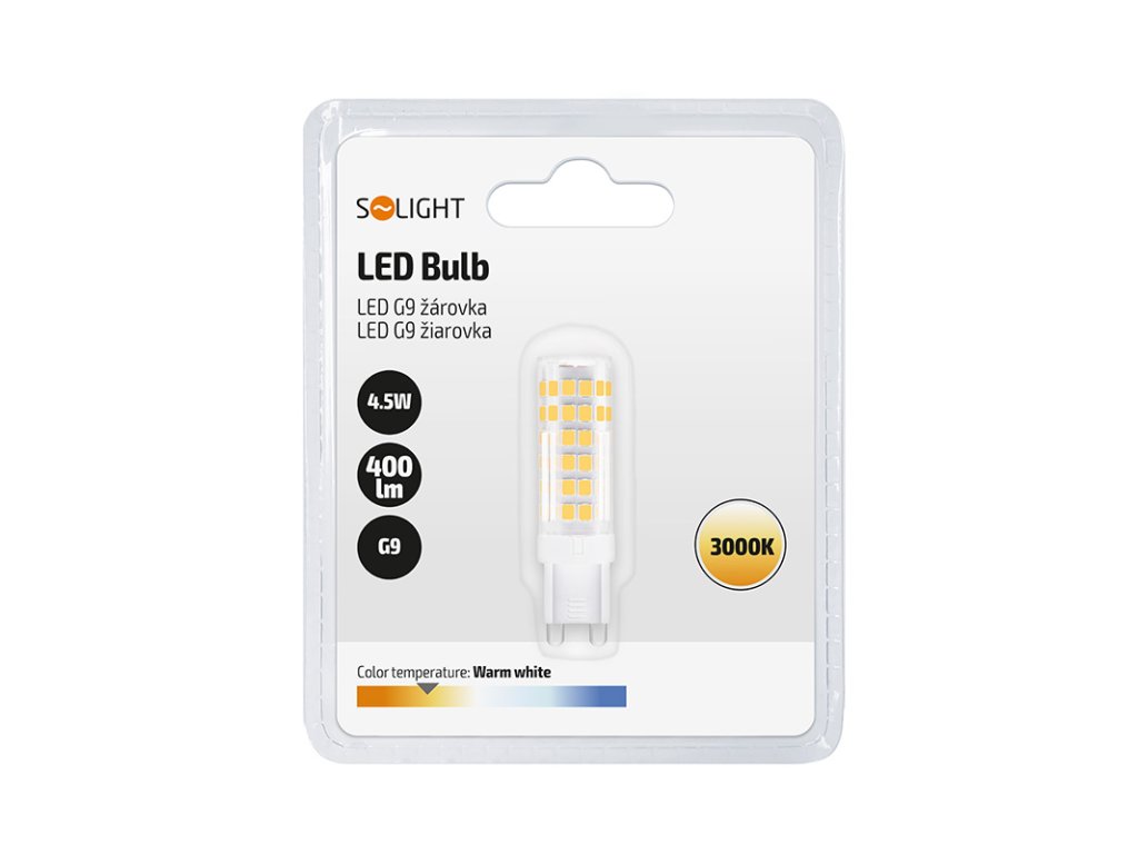 Výkonnejšia žiarovka LED s päticou G9 je vhodná pre náročnejšie aplikácie, kde chcete zachovať kompaktné rozmery svietidla, ale zároveň dosiahnuť vyšší svetelný výkon. Pri príkone 4,5 W poskytuje 400 lm teplého bieleho svetla.