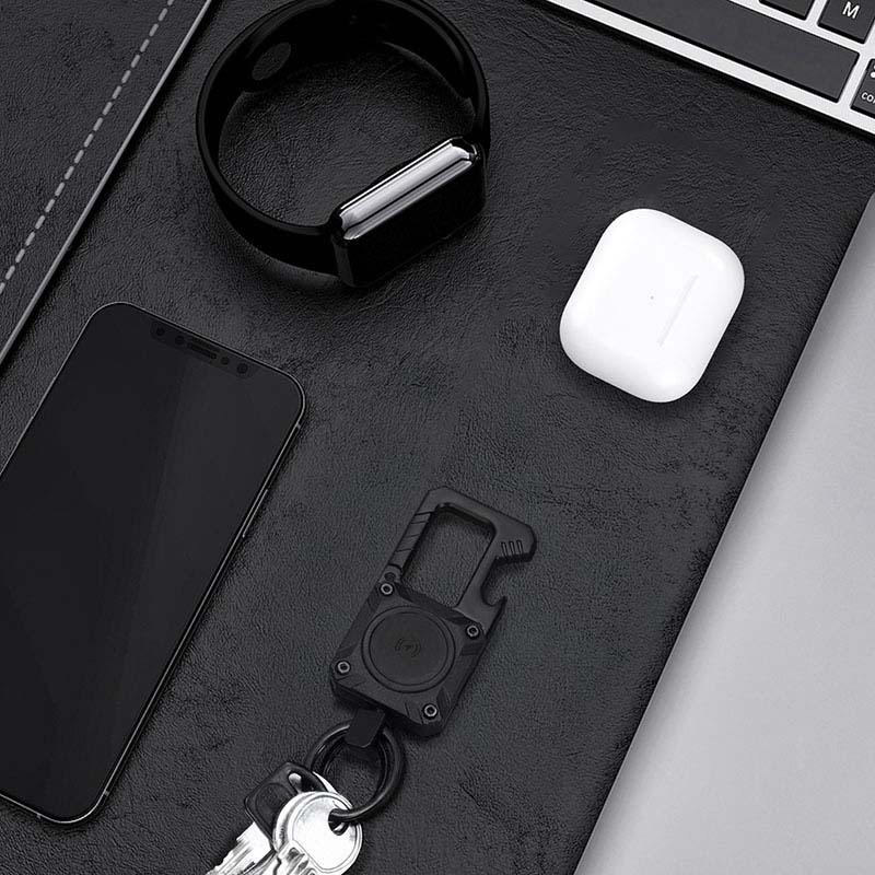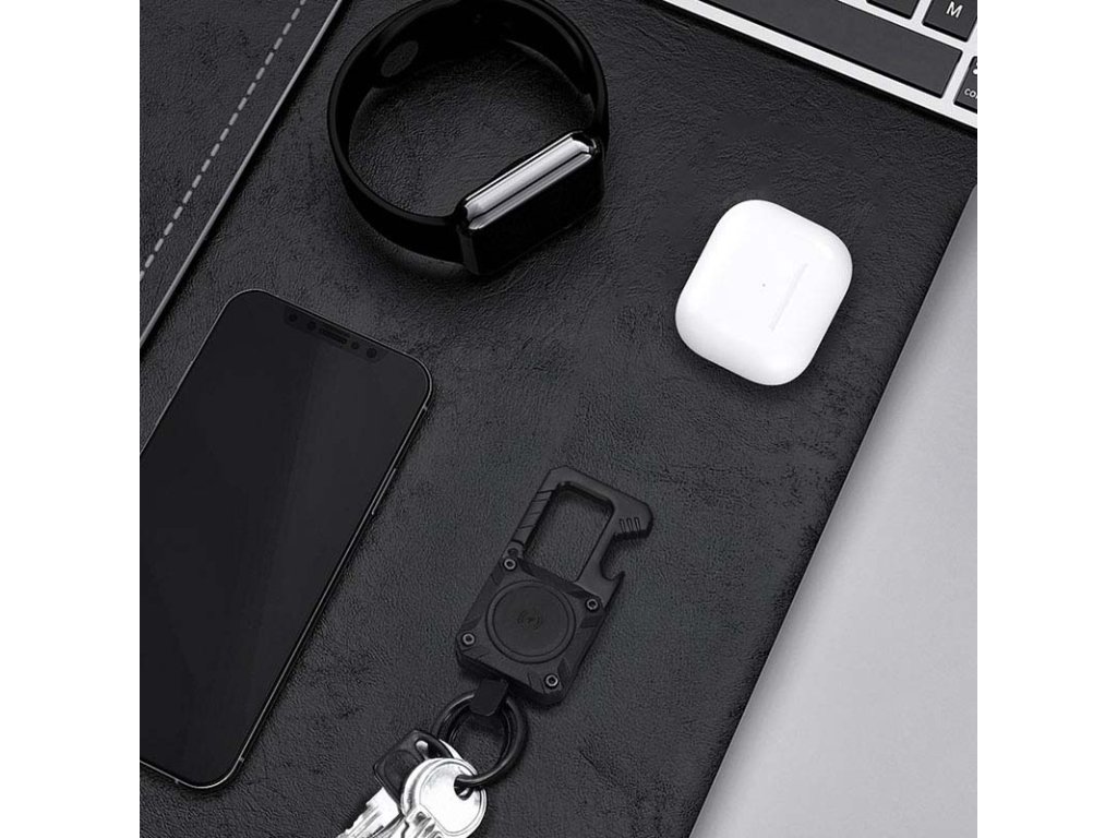 Vďaka tomuto štýlovému kovovému prívesku na kľúče budete mať svoje kľúče, batoh alebo iné cennosti vždy bezpečne pod dohľadom. Prívesok na kľúče v sebe spája Bluetooth lokátor kompatibilný s Apple Find My a praktický otvárač na fľaše. Štýl, bezpečnosť a funkčnosť v jednom!