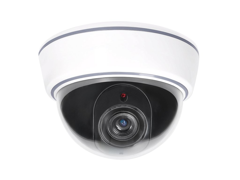 Súprava bezpečnostných kamier - realistický vzhľad na zvýšenie bezpečnosti. Táto atrapa bezpečnostnej kamery pomáha odradiť zlodejov a navodiť dojem sledovania. Verne napodobňuje skutočnú kameru vrátane LED diódy na simuláciu aktívnej prevádzky. Určená na montáž na strop, ideálna do vnútorných priestorov. Jednoduchá inštalácia, nízka spotreba energie (napájanie pomocou 3x AA batérií, nie sú súčasťou balenia).