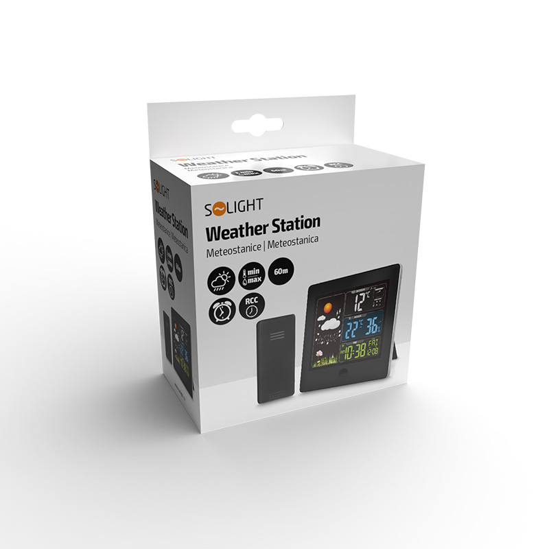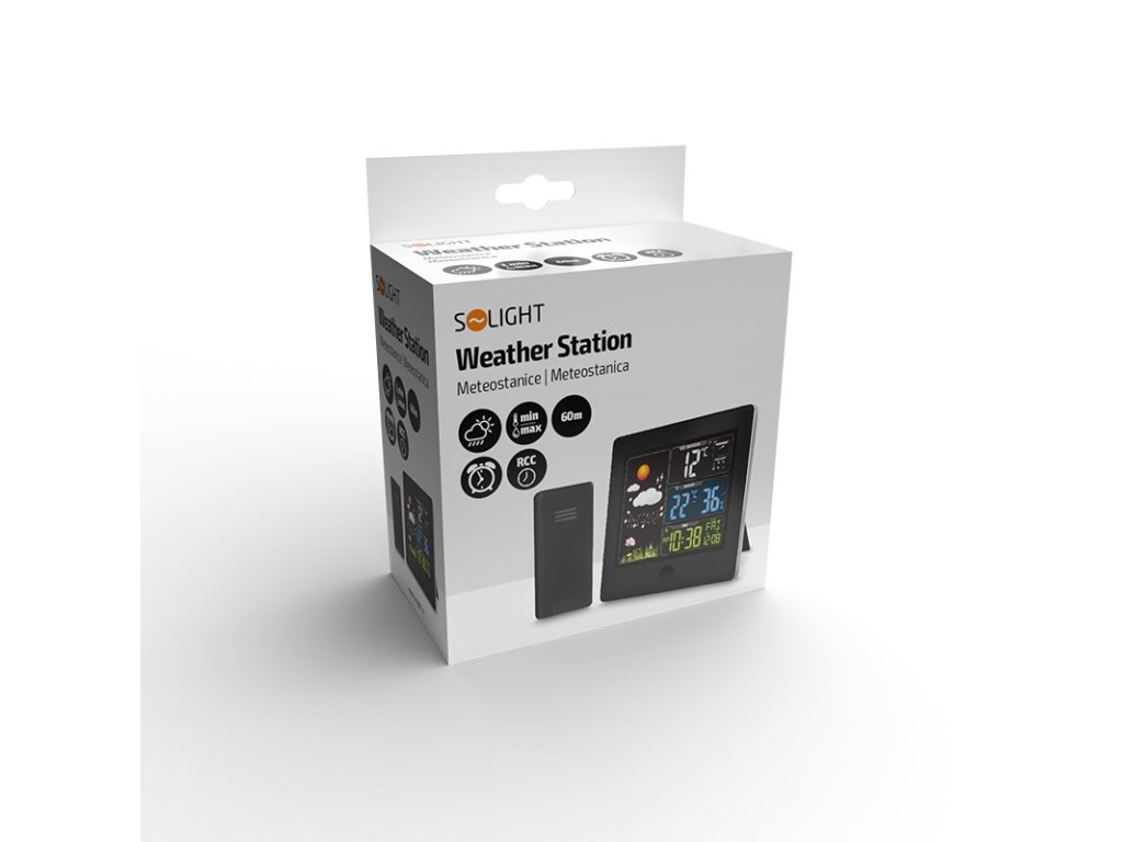Solight meteostanica, farebný LCD, teplota, vlhkosť, RCC, čierna