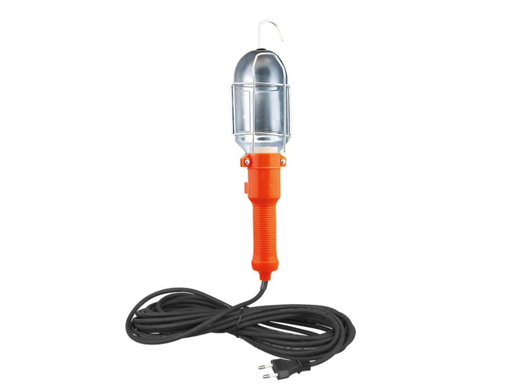 Klasická pracovná lampa pre žiarovku E27 (max. 60 W) je vhodná do dielne, pivnice alebo garáže. Je vybavená kovovým háčikom na zavesenie a ochrannou kovovou mriežkou. Vďaka vypínaču na tele lampy je jej používanie jednoduché a bezpečné.