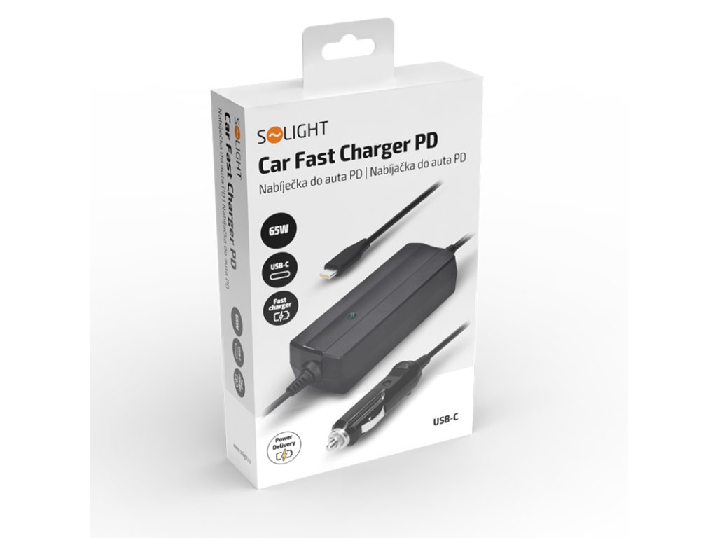 Solight nabíjačka do auta USB-C, 65W, PD fast charger