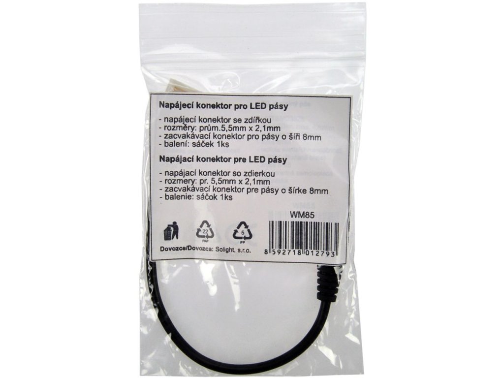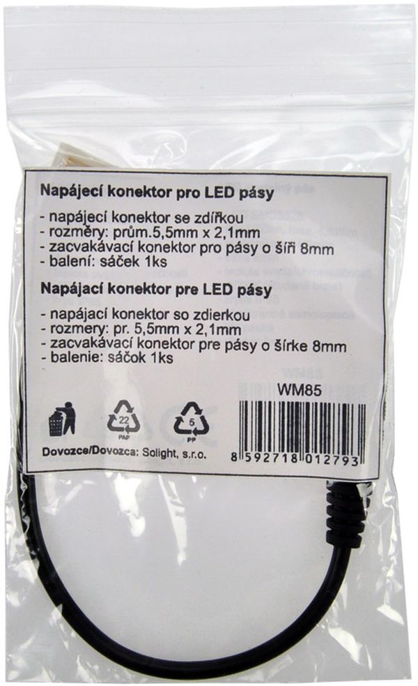 Solight napájací konektor pre LED pásy, 5,5 mm zdierka - 8mm zacvakávací konektor, balenie 1ks, sáčok