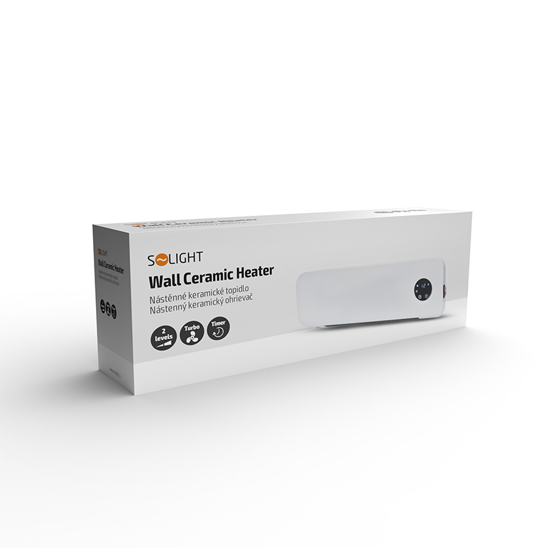 Keramické nástenné vykurovacie teleso 2000 W s moderným dizajnom a LED displejom. Ponúka dva stupne výkonu (1000 W / 2000 W), ventilátor a časovač (týždenný + 24 h). Vďaka ochrane IP24 je odolný voči vlhkosti a vhodný do kúpeľní. Automatické vypnutie v prípade náhleho poklesu teploty chráni pred zbytočnou spotrebou. Diaľkové ovládanie pre maximálny komfort. Vhodný pre miestnosti s rozlohou do 20 m2. Farba: biela, napájanie 230 V/50 Hz.
