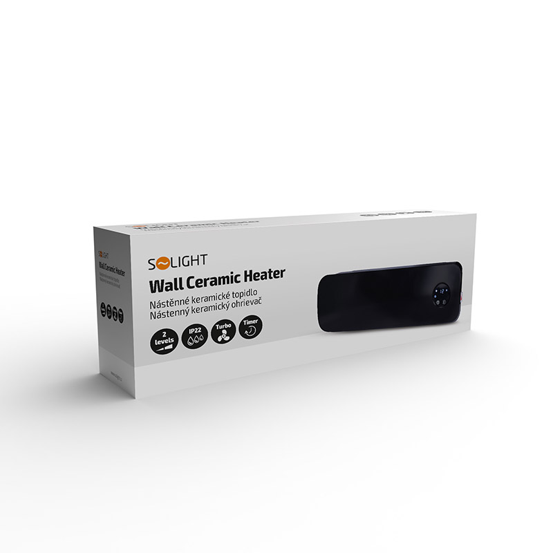 Solight nástenný keramický ohrievač, 2000 W, čierne