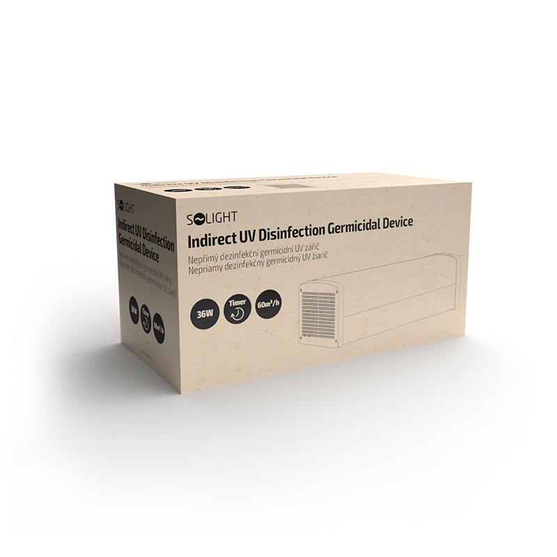 Priamy UV žiarič 36 W na účinnú dezinfekciu vzduchu bez priameho pôsobenia UV-C žiarenia na priestory. Bezpečné používanie pri dezinfekcii priestorov. Tri možnosti časovača na flexibilné použitie a životnosť UV-C žiarenia až 5000 hodín. Eliminuje vírusy, baktérie, plesne, huby a hmyz. Rýchlejší ako chlór a účinnejší ako kyselina chlórová. Diaľkové ovládanie s dosahom 20 m. Možnosť montáže na stenu (montážny materiál je súčasťou balenia). Napájanie 230 V/50 Hz, prietok vzduchu 60 m3/h, krytie IP20.
