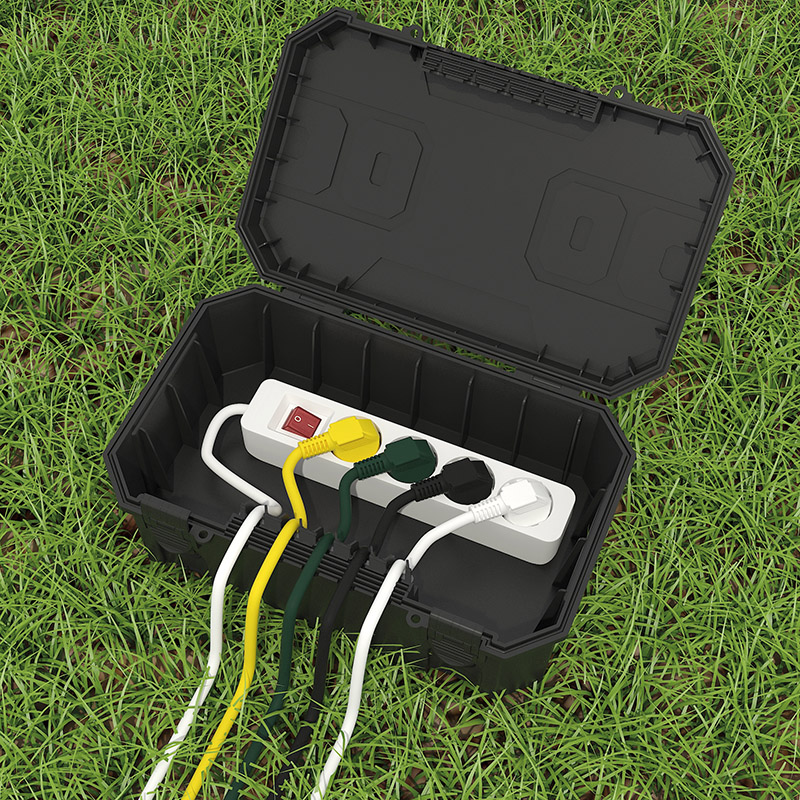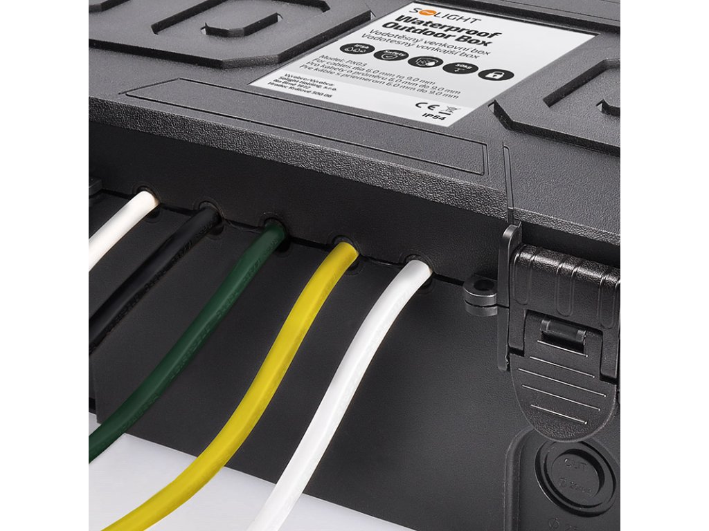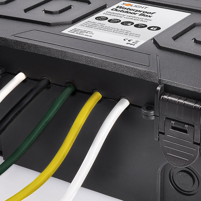 Vodeodolná a prachotesná krabica triedy IP54 je bezpečná ochrana pred poškodením káblových spojení. Uschová predlžovacie prívody, napájanie alebo rozbočenie anténnych a internetových rozvodov, vianočného osvetlenia, časové spínače, apod. Zabraňuje oxidácii konektorov a skratom vlhkom, chráni pred nečistotami. Uzamykateľné veko chráni káblové spoje pred rozpojením alebo zničením cudzími osobami. Možno použiť s elektrickými zariadeniami vo vonkajšom aj vnútornom prostredí.