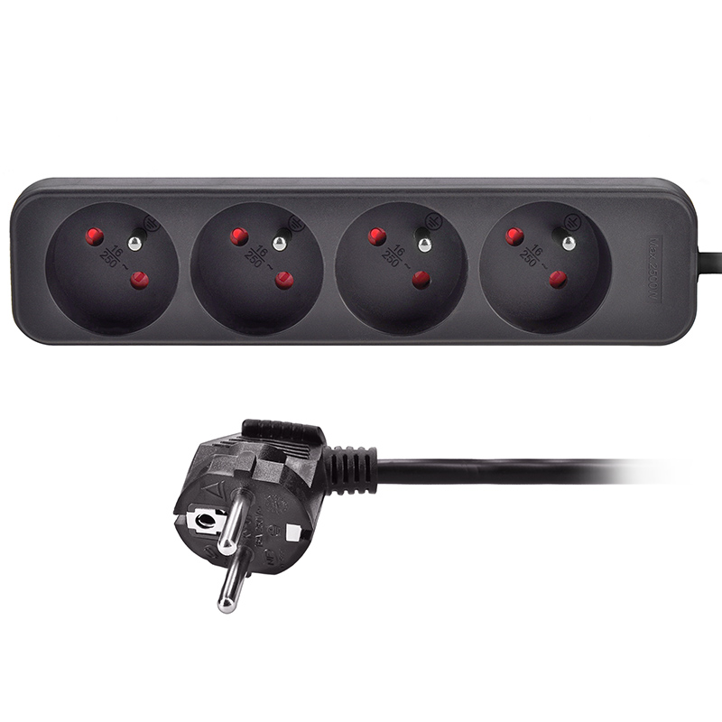 Praktický čierny predlžovací kábel s dĺžkou 3 metre a štvormi zásuvkami umožní priviesť elektrickú energiu tam, kde nie je k dispozícii pevná zásuvka. Ideálne pre domáce aj kancelárske využitie.