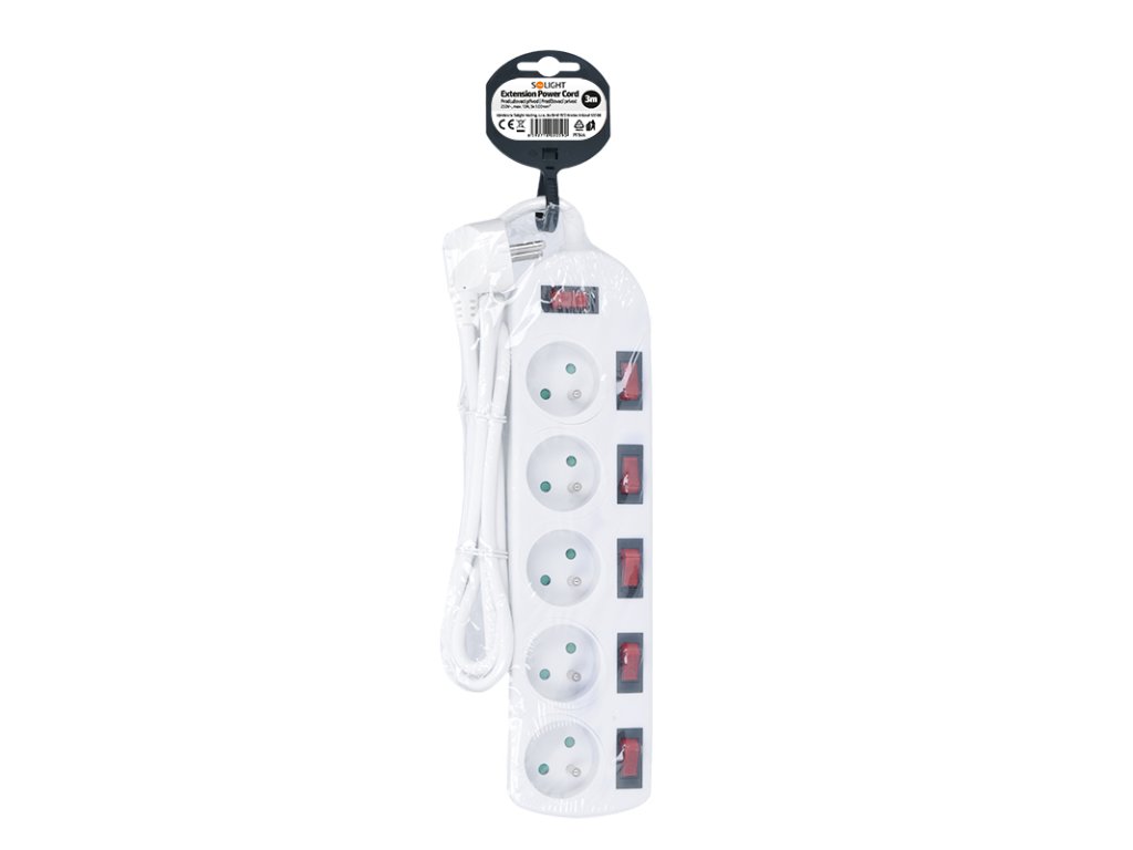 Solight predlžovací prívod, 5 zásuviek, biely, 6x vypínač, 3m