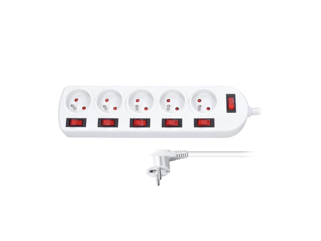 Každá zásuvka je vybavená detskou poistkou, ktorá zvyšuje bezpečnosť v domácnostiach s malými deťmi. Päť zásuviek poskytne dostatok flexibility pre kancelársku techniku, nabíjačky, lampy a pod. Praktické a elegantné riešenie s maximálnou kontrolou.