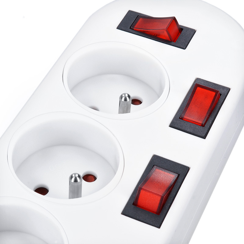 - individuálny vypínač pre každú zásuvku, podsvetlený