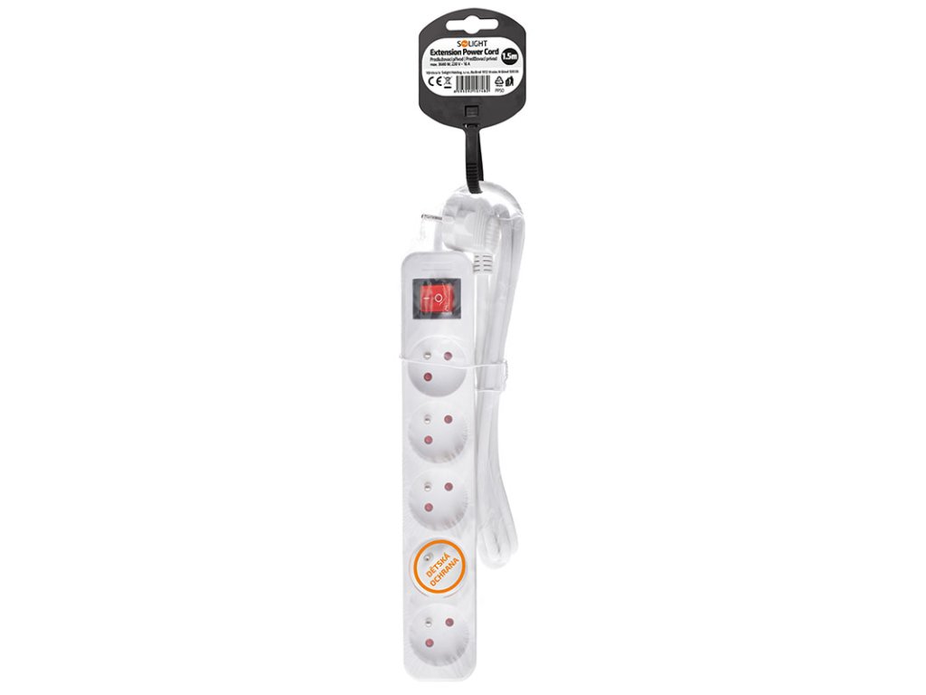 Praktický biely predlžovací kábel s dĺžkou 1,5 metra a piatimi zásuvkami umožní priviesť elektrickú energiu tam, kde nie je k dispozícii pevná zásuvka. Podsvietený vypínač umožňuje pohodlné ovládanie všetkých pripojených zariadení. Ideálne pre domáce aj kancelárske využitie.
