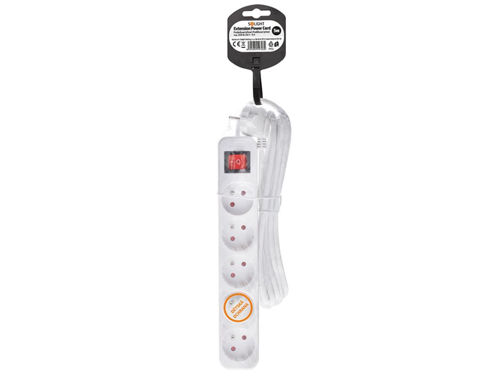 Solight predlžovací prívod, 5 zásuviek, biely, vypínač, 5m
