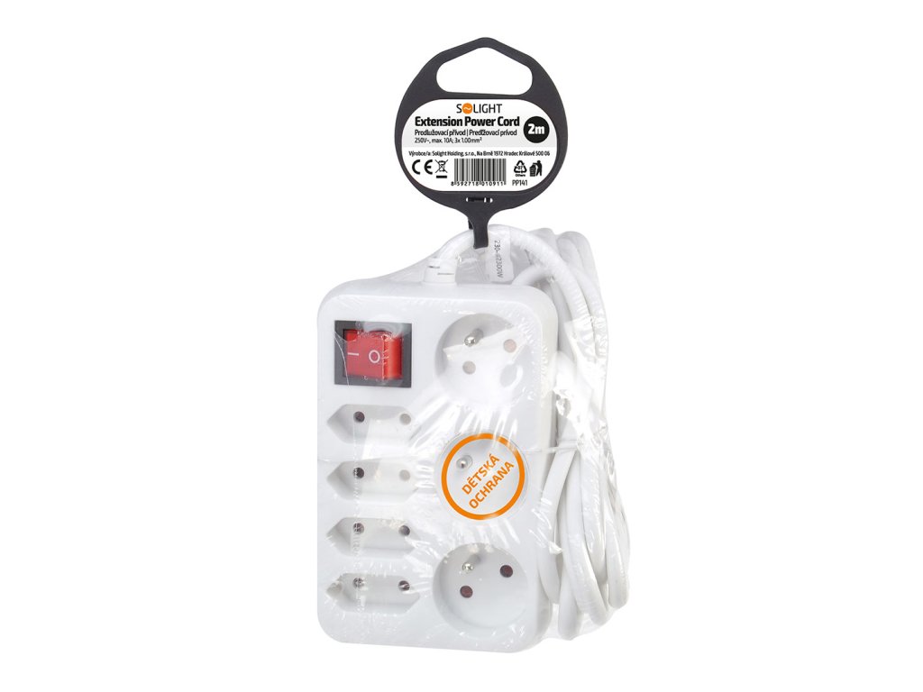 Solight predlžovací prívod, 7 zásuviek, biely, vypínač, 2m