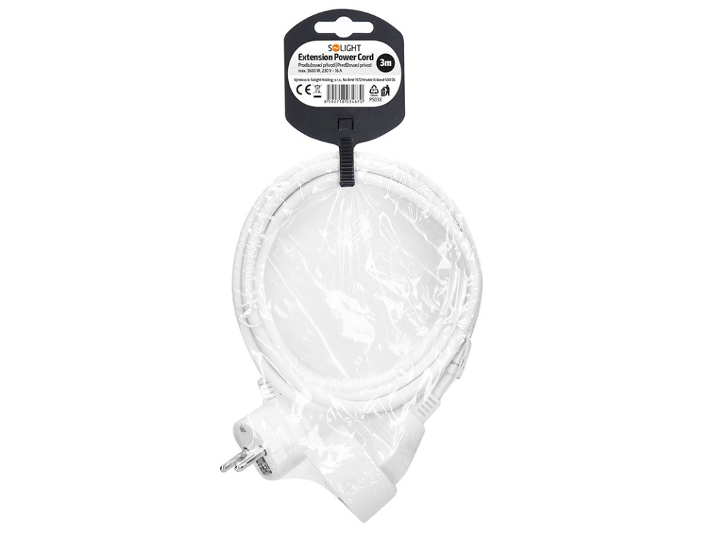 Solight predlžovací prívod 3m, 1 zásuvka, 16A/3680W, PVC, biely