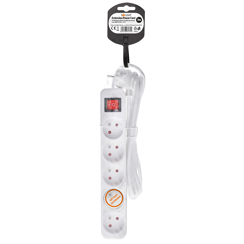 Praktický biely predlžovací kábel s dĺžkou 3 metre a piatimi zásuvkami umožní priviesť elektrickú energiu tam, kde nie je k dispozícii pevná zásuvka. Podsvietený vypínač umožňuje pohodlné ovládanie všetkých pripojených zariadení. Ideálny pre domáce aj kancelárske využitie.
