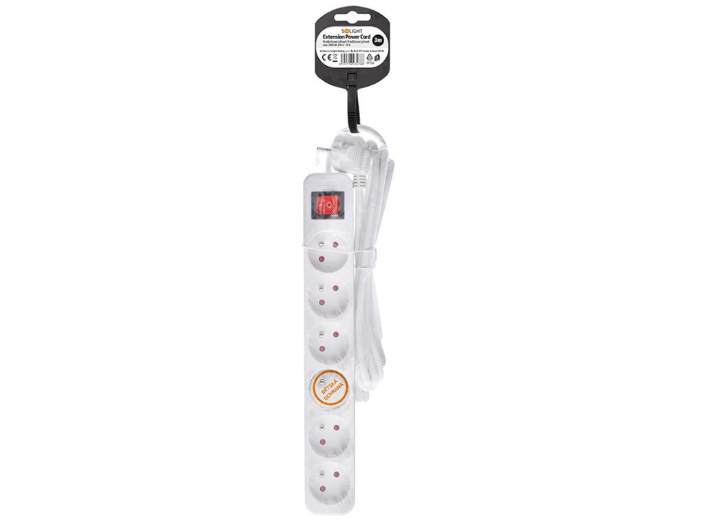 Solight predlžovací prívod 3m, 6 zásuviek, vypínač, 16A/3680W, PVC, biely