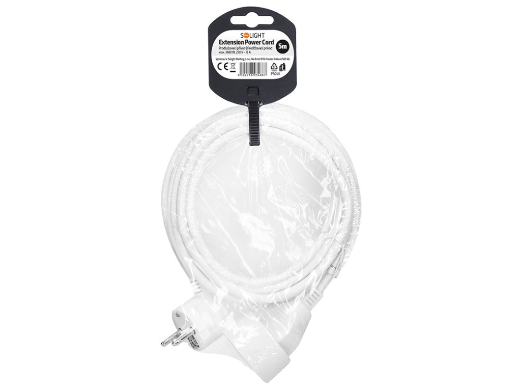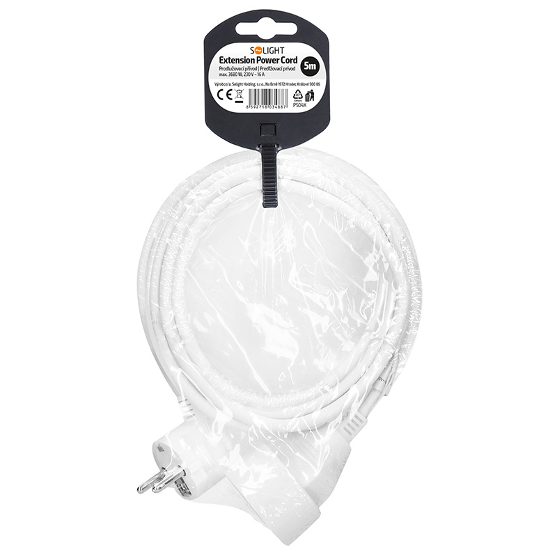 Solight predlžovací prívod 5m, 1 zásuvka, 16A/3680W, PVC, biely