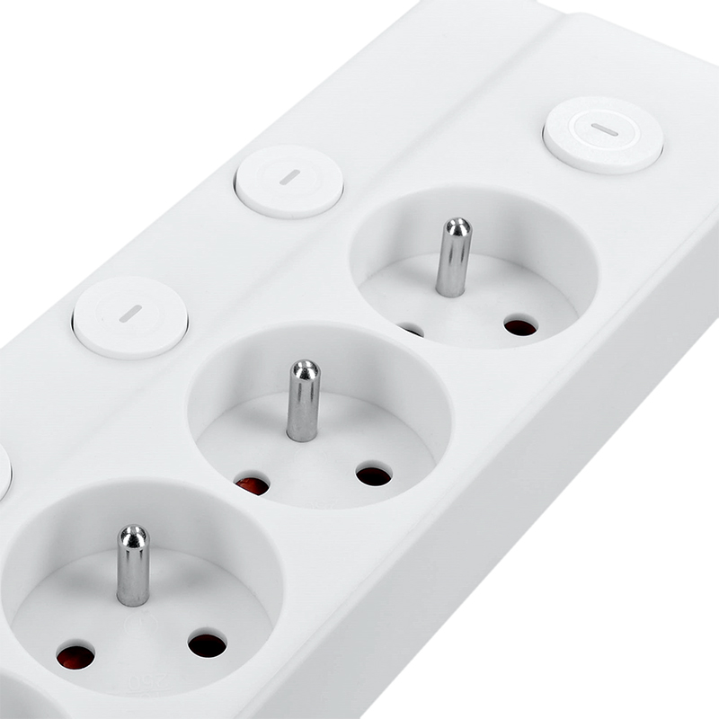 Každá zásuvka je vybavená detskou poistkou, ktorá zvyšuje bezpečnosť v domácnostiach s malými deťmi. šesť zásuviek poskytne dostatok flexibility pre kancelársku techniku, nabíjačky, lampy a pod. Resetovateľný istič pri preťažení zásuvkového poľa preruší napájanie. Potom je možné predlžovací prívod opäť sprevádzkovať. Praktické a elegantné riešenie s maximálnou kontrolou.