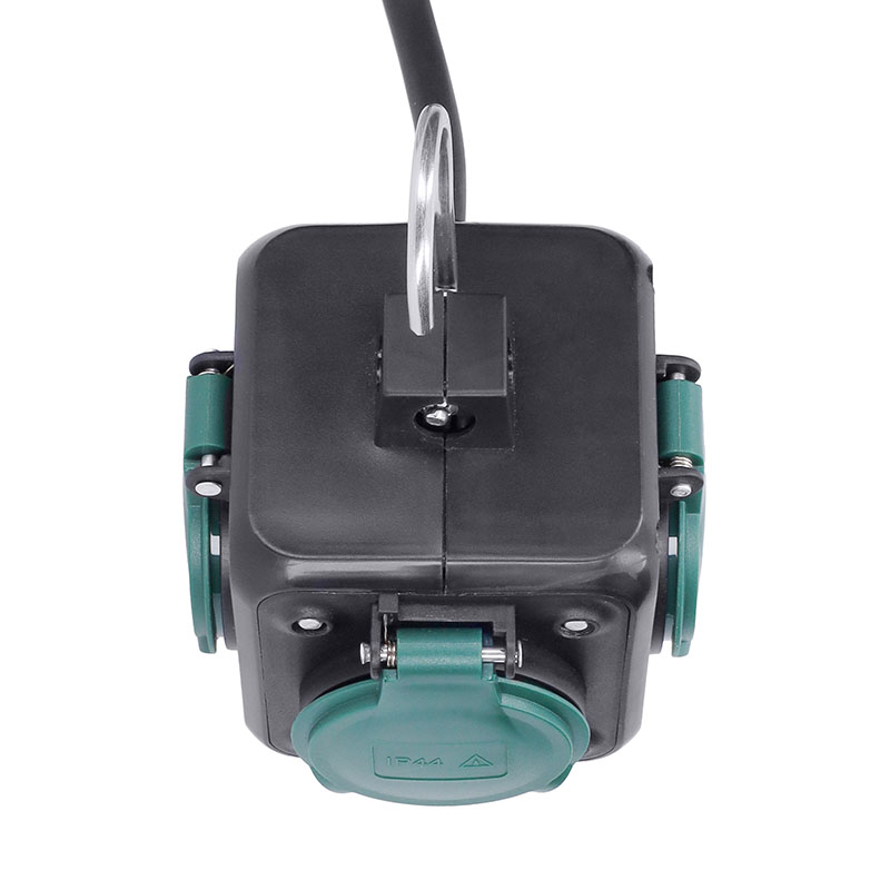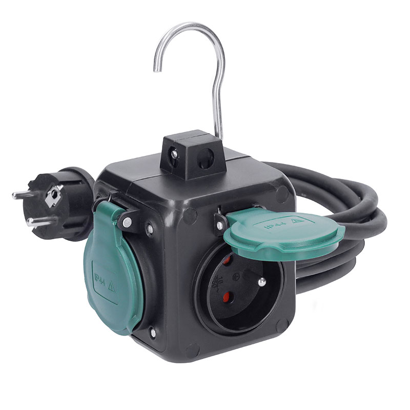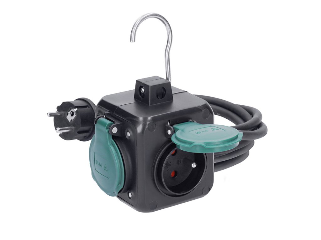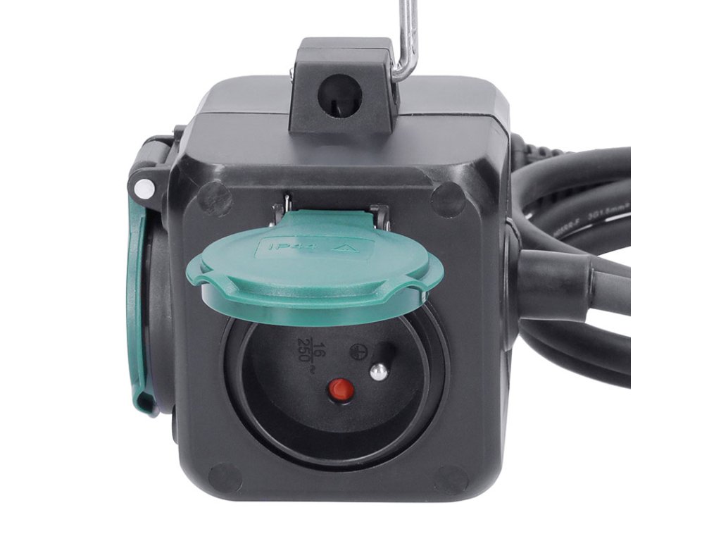 - 3 zásuvky 16A 230V~, detské poistky a IP44 krytky proti prachu a vlhkosti