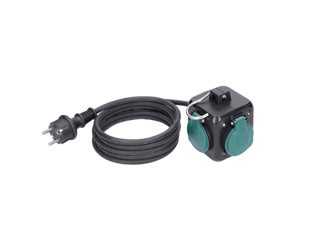 Odolný gumový kábel je určený na stredné mechanické zaťaženie a použitie v exteriéri. Zásuvky sú opatrené samozatváracími ochrannými viečkami proti vlhkosti a prachu.