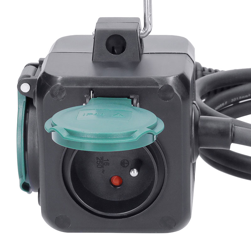 Prívod je navrhnutý pre maximálnu záťaž 3680 W, tzn. prúdové zaťaženie 16 A pri napätí v sieti 230 V~. Zaisťuje stabilný prenos energie pre bežné a náročné elektrospotrebiče na dlhšiu vzdialenosť aj vo vonkajšom prostredí. Zásuvky sú vybavené detskými poistkami pre maximálnu bezpečnosť.