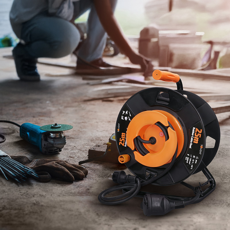 Predlžovací kábel na navíjacom bubne s dĺžkou 25 metrov a jednou zásuvkou je ideálny na použitie vonku, na stavbách alebo v dielňach. Gumový kábel zaisťuje odolnosť proti poveternostným podmienkam a mechanickému namáhaniu. Produkt je navrhnutý na bezpečné a spoľahlivé pripojenie stavebných, záhradných i menej náročných priemyselných zariadení.