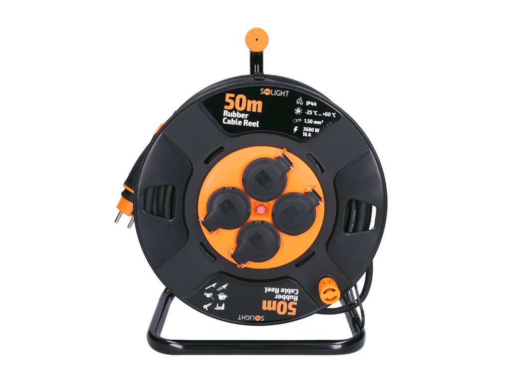 Maximálna záťaž 3680 W (16 A pri 230 V~) umožňuje bezpečnú prevádzku väčšiny vonkajších a profesionálnych zariadení. Ergonomické madlo uľahčuje prenášanie a rýchle navinutie kábla. Ideálny pomocník na profesionálne stavebné práce, údržbu alebo náročné hobby projekty.