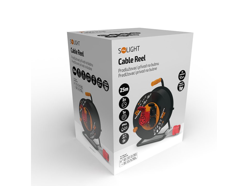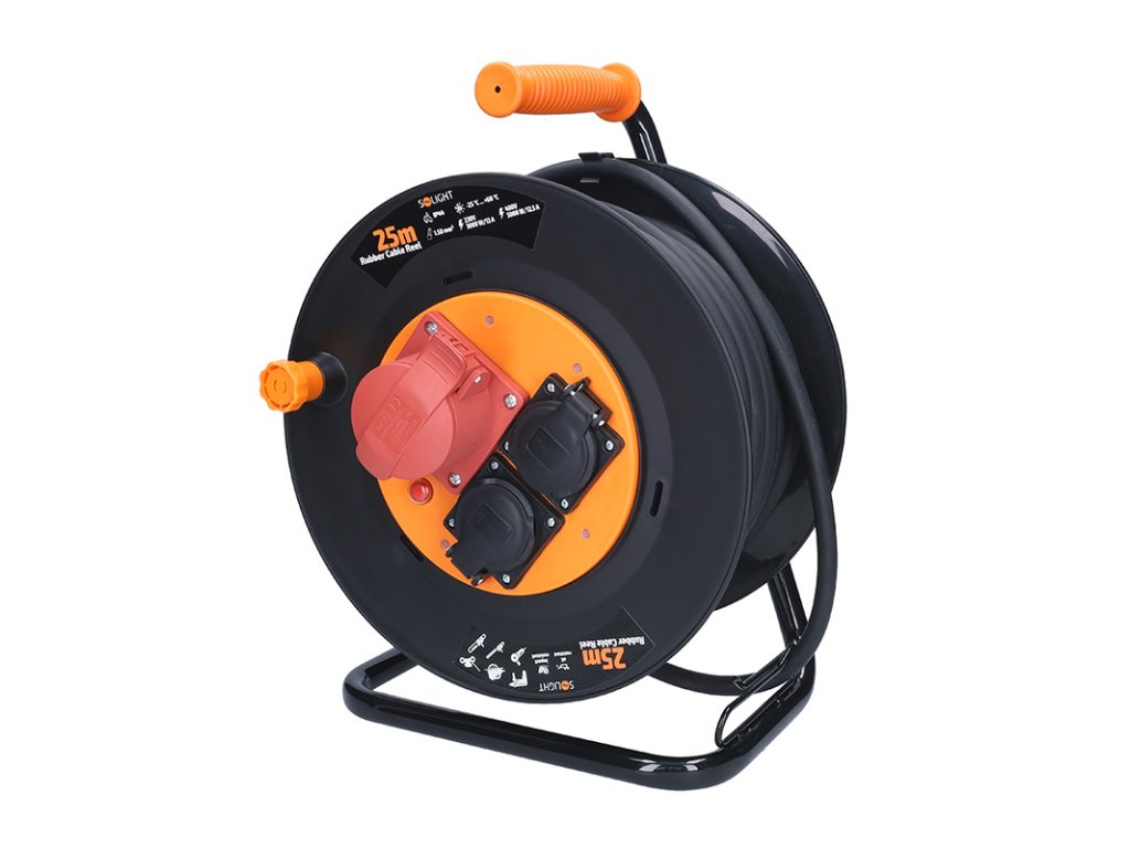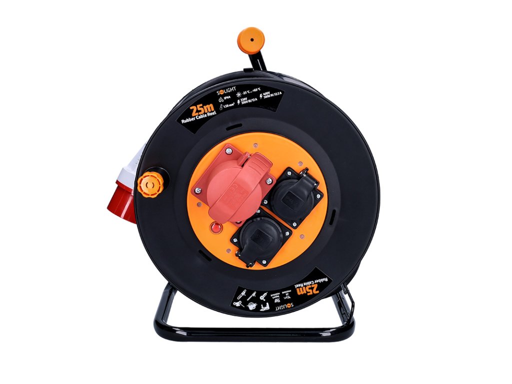 Solight predlžovací prívod - na bubne, zásuvky 400V + 230V, 25m kábel guma-neopren 5x1,5mm2, IP44