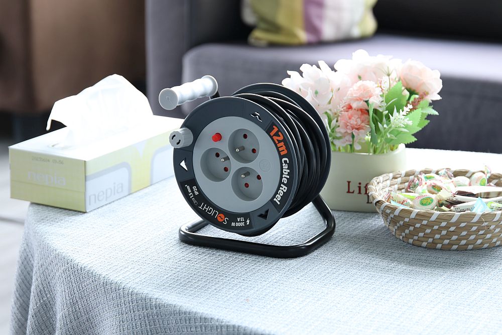 Klasický dizajn upravený do malých rozmerov je rovnako výkonný ako veľký bubon, napriek tomu oveľa skladnejší a ľahšie prenositeľný. Tri zásuvky s detskými poistkami sú chránené tepelnou poistkou, ktorá preruší napájanie v prípade preťaženia alebo pri plnej záťaži bez úplného odvinutia kábla.