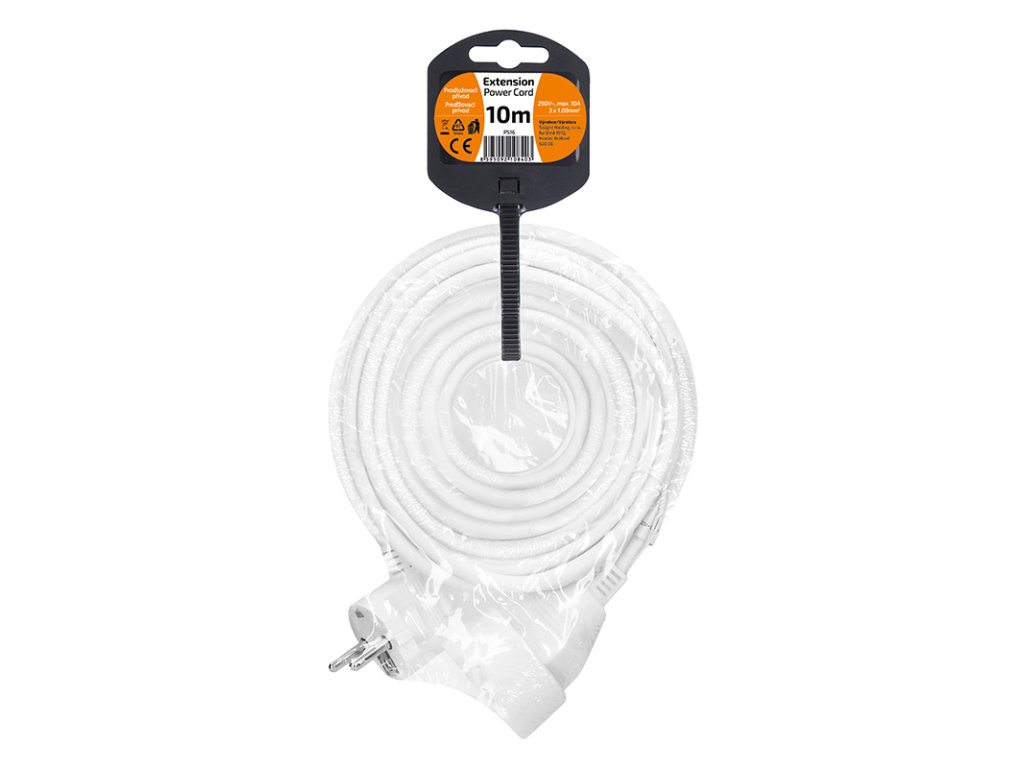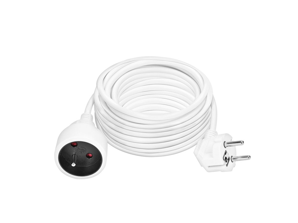 Kompaktný biely predlžovací kábel s dĺžkou 10 metrov a jednou zásuvkou je ideálny na jednoduché predĺženie elektrickej energie v domácnosti, kancelárii alebo dielni. Vhodný na pripojenie samostatného zariadenia mimo dosahu pevnej zásuvky.