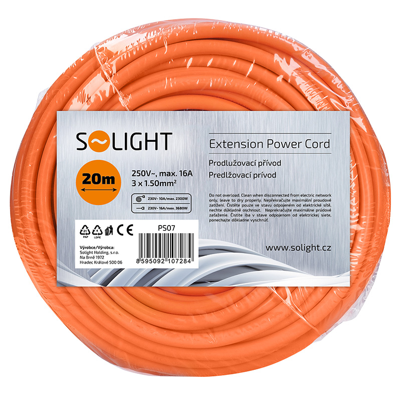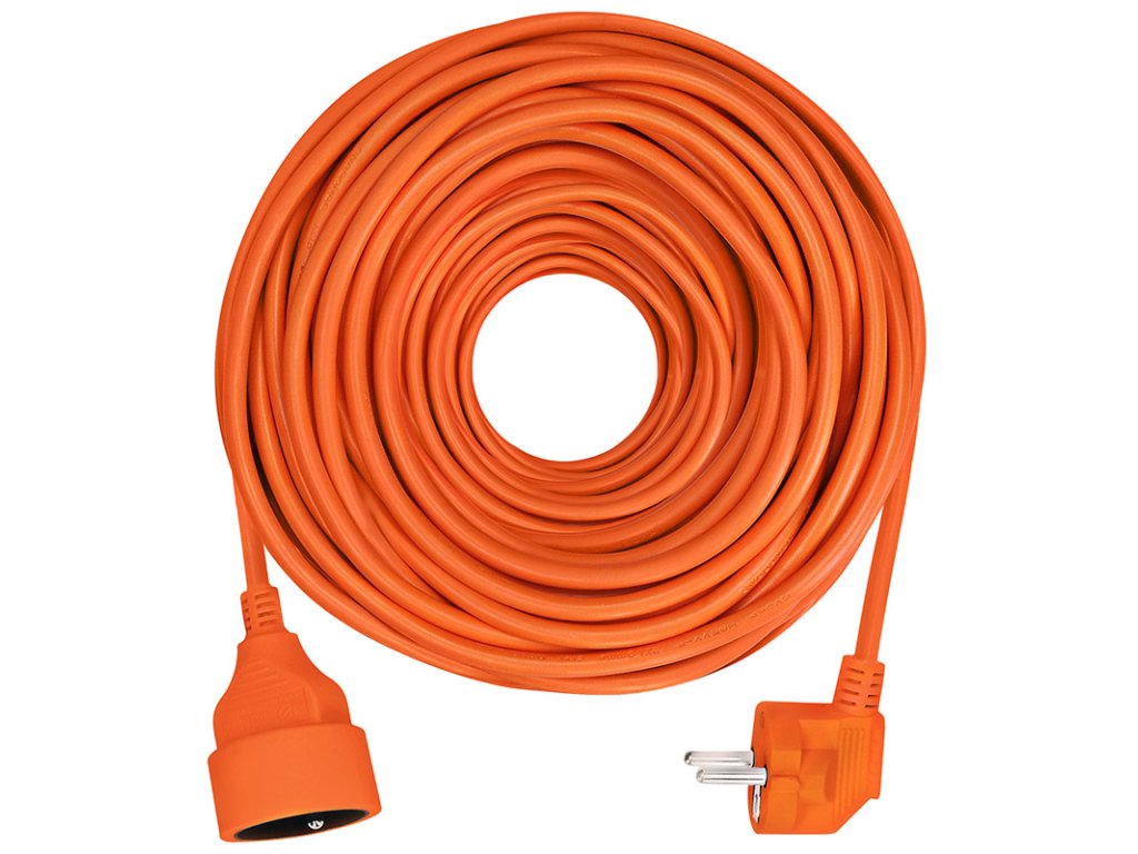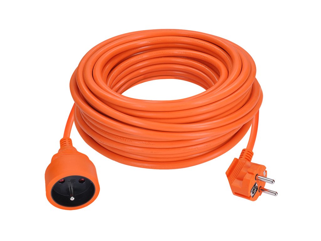 Oranžový predlžovací kábel s dĺžkou 20 metrov a jednou zásuvkou je ideálny na predĺženie elektrickej energie na záhrade alebo v dielni. Vďaka trom vodičom vrátane uzemnenia je vhodný na pripojenie akýchkoľvek zariadení s trojpólovou uzemnenou aj dvojpólovou neuzemnenou vidlicou prívodnej šnúry. Farebné odlíšenie od okolitého prostredia zvyšuje bezpečnosť pri práci.