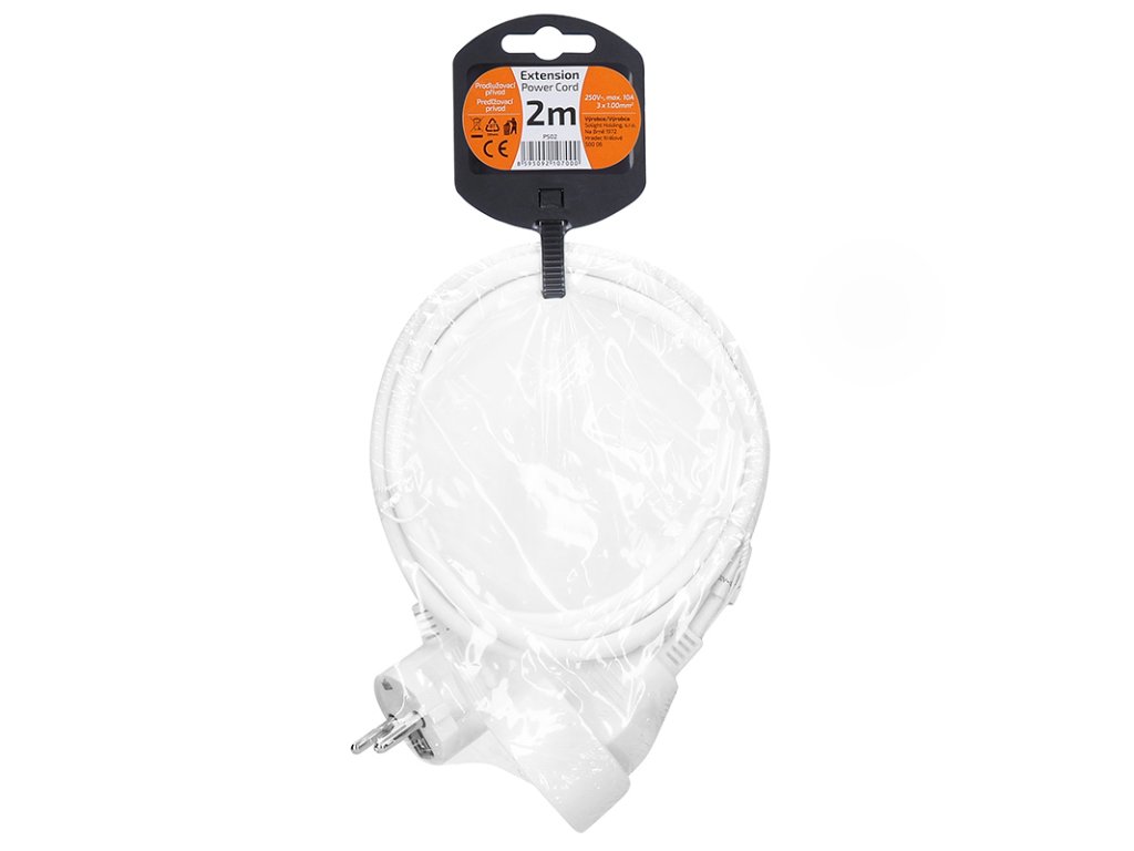 Kompaktný biely predlžovací kábel s dĺžkou 2 metre a jednou zásuvkou je ideálny na jednoduché predĺženie elektrickej energie v domácnosti, kancelárii alebo dielni. Vhodný na pripojenie samostatného zariadenia mimo dosahu pevnej zásuvky.