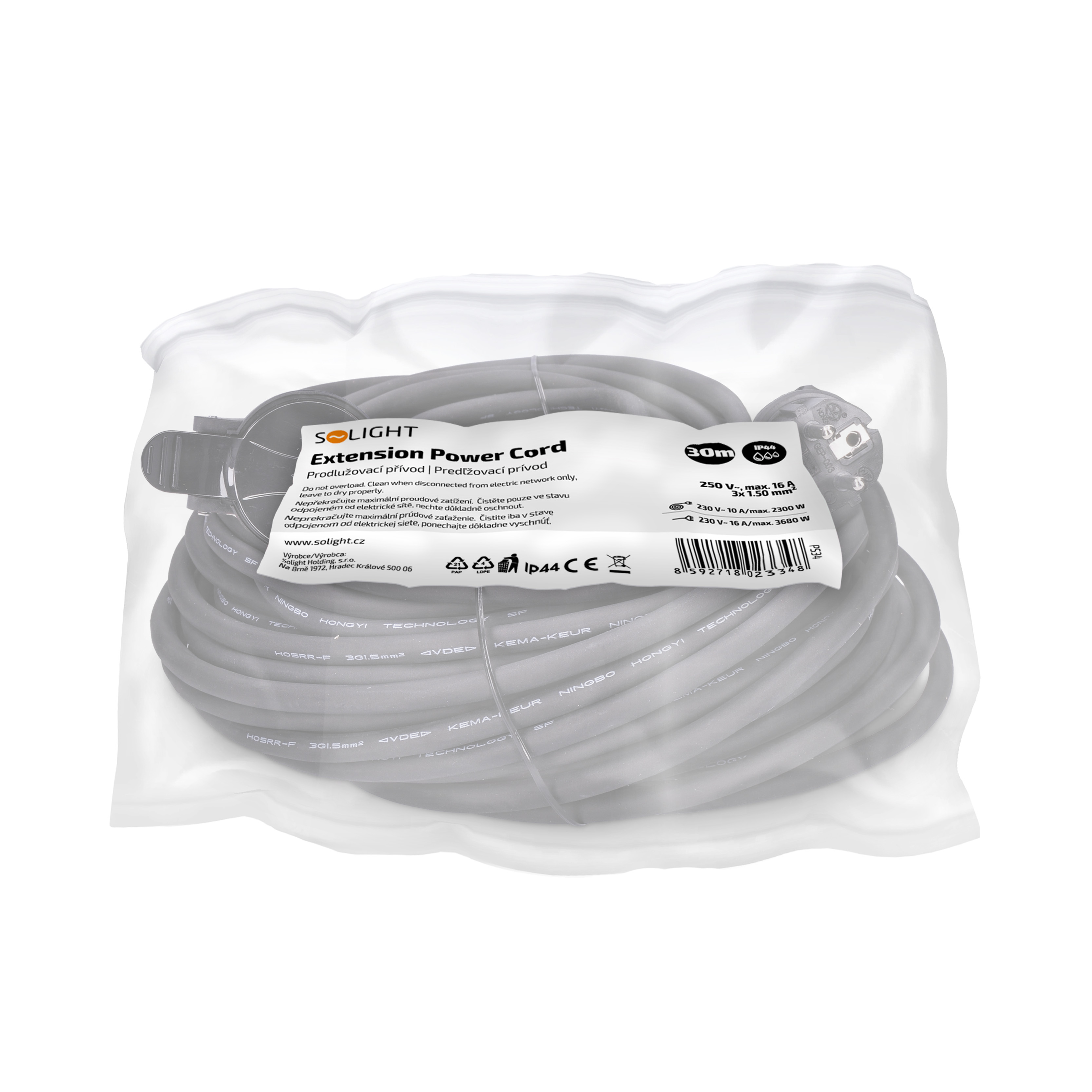 Prívod je navrhnutý pre maximálnu záťaž 3680 W, tzn. prúdové zaťaženie 16 A pri napätí v sieti 230 V~. Zaisťuje stabilný prenos energie pre bežné a náročné elektrospotrebiče aj na veľkú vzdialenosť. Zásuvka je vybavená detskou poistkou pre maximálnu bezpečnosť.